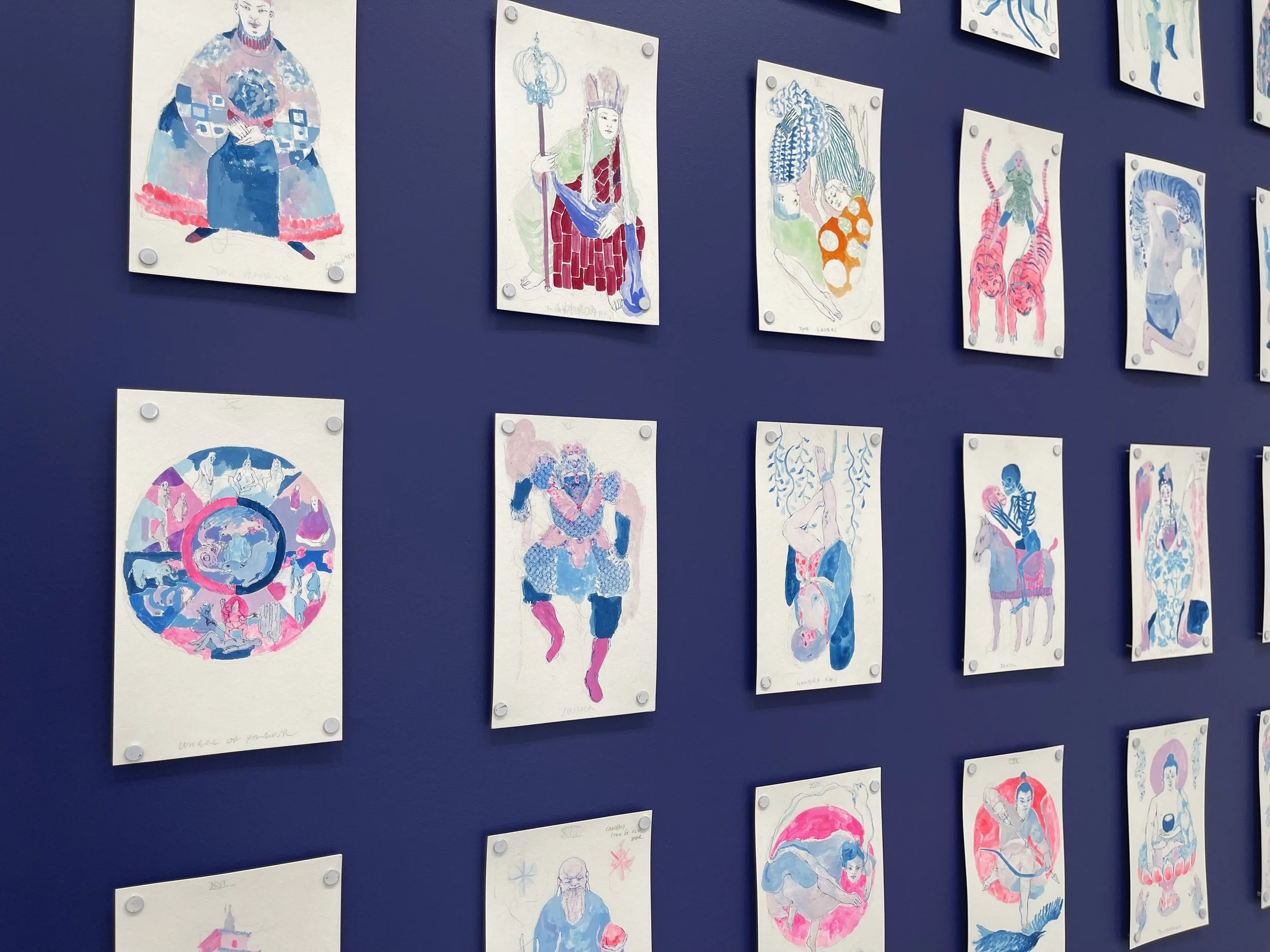 mtn space gallery is pleased to present Trickster Remakes World, a solo exhibition of mixed media tarot work by New York-based artist Jia Sung. On view will be the complete set of original drawings from Sung’s tarot deck, Trickster’s Journey, a reinterpretation of both the major and minor arcana.